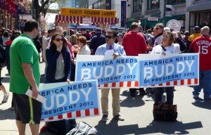 Buddy? Who’s Buddy? Even the lady holding the sign doesn’t seem sure: