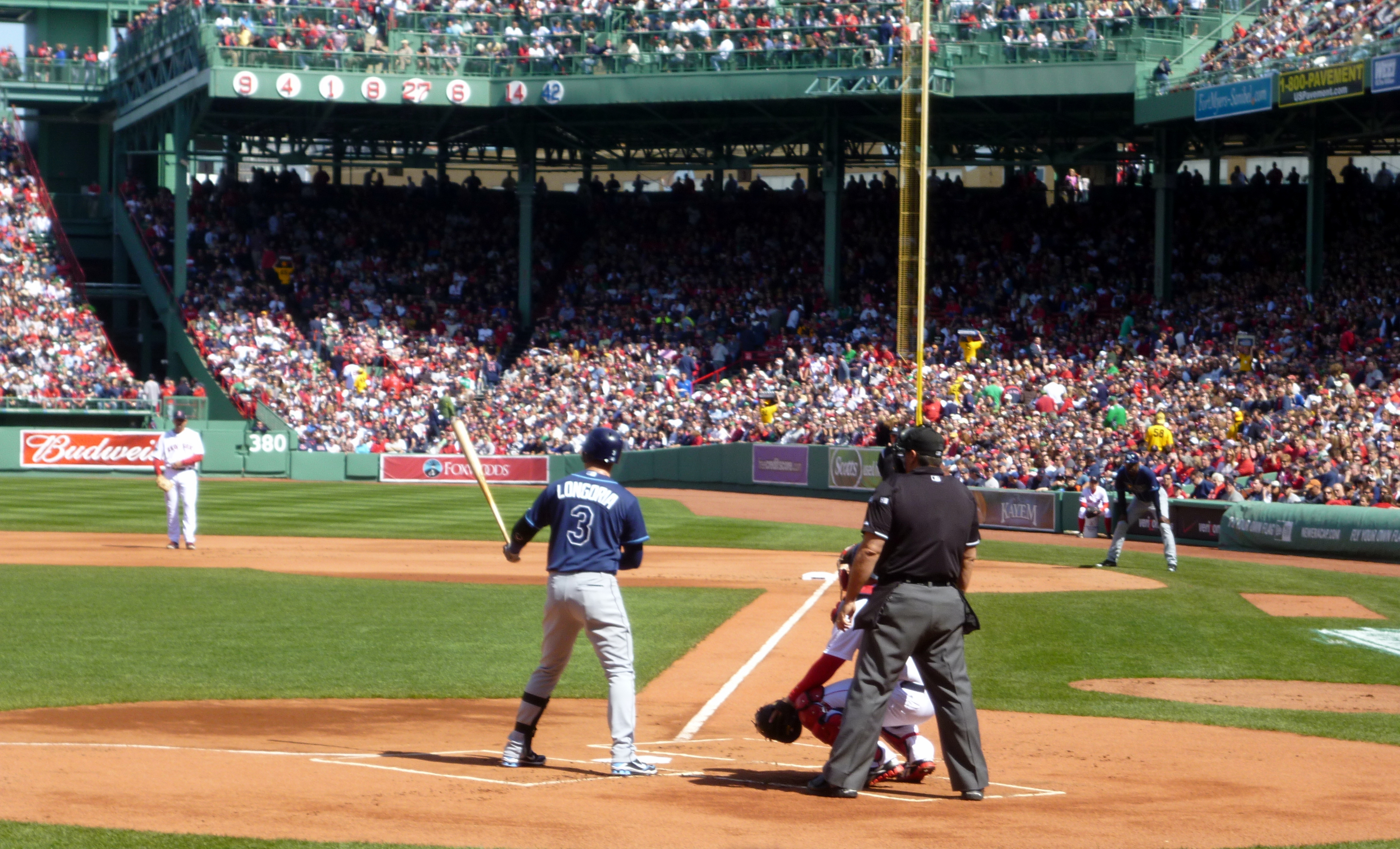Oh, the game. Beckett was very efficient — only struck out one, but got the Rays to hit a lot of fly balls. David Price for Tampa Bay was extremely inefficient, despite consistently hitting 97 mph on the gun. He was gone after three innings. The hitting star for the Red Sox was the immortal Kelly Shoppach; he even managed to steal the first base of his career on a weird delayed steal. The Red Sox put ten men on in a row in the bottom of the eighth and scored eight runs to seal the victory. Final score: 12-2.