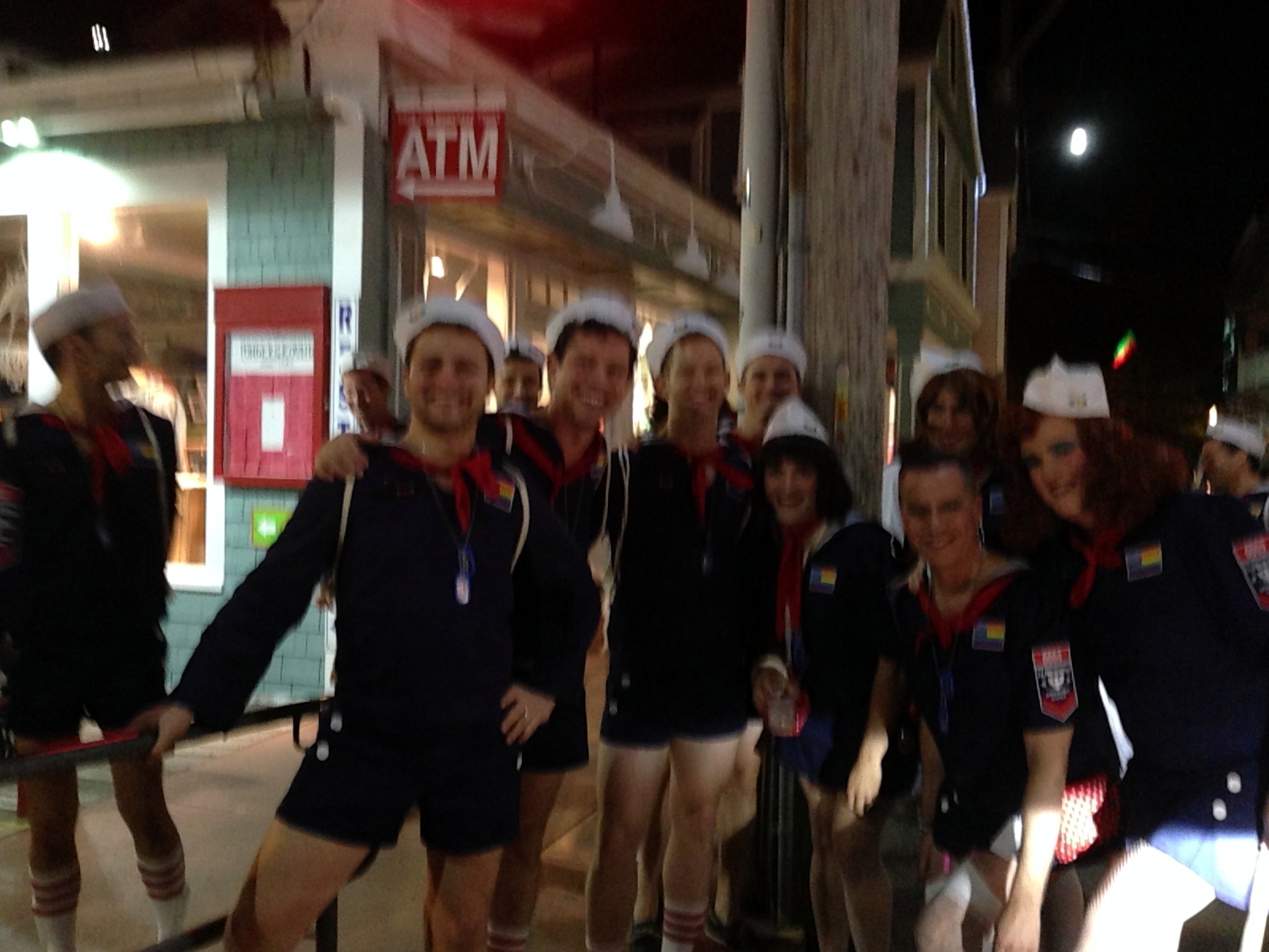After dark, things get interesting in Provincetown — too bad my camera isn’t better. Here are some sailor boys and, er, girls: